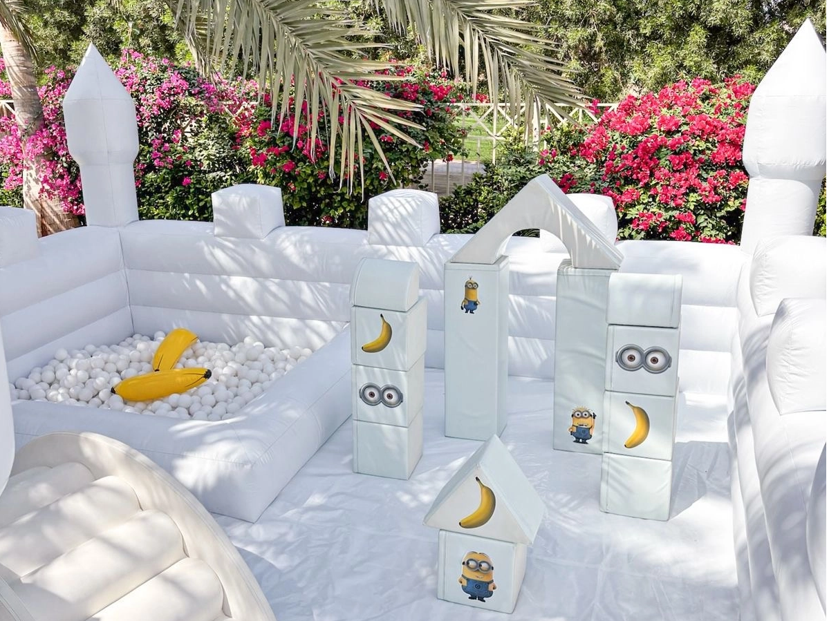 A charming white Minion-themed soft play castle with a ball pit and slide, perfect for toddlers’ indoor playgrounds, daycare centers, and event rentals. Designed with safety, style, and commercial durability in mind, this set is ideal for businesses seeking playful yet premium indoor play solutions.