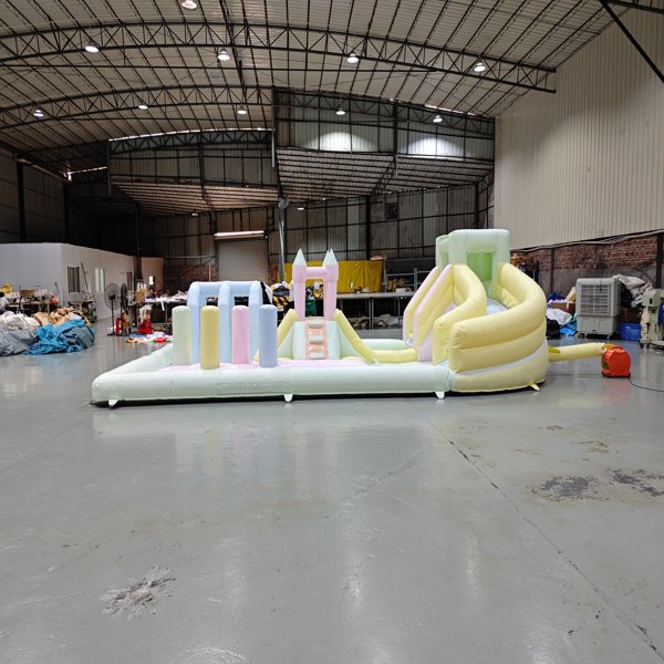Deze opblaasbare zachte speeltuin combineert moderne pastelkleurige esthetiek met functionele speelfuncties, waardoor het een populaire keuze is voor exploitanten van binnenspeeltuinen, verhuurbedrijven en familie-entertainmentcentra. Het visueel aantrekkelijke ontwerp trekt zowel kinderen als ouders aan, waardoor bedrijven zich kunnen onderscheiden in concurrerende markten.